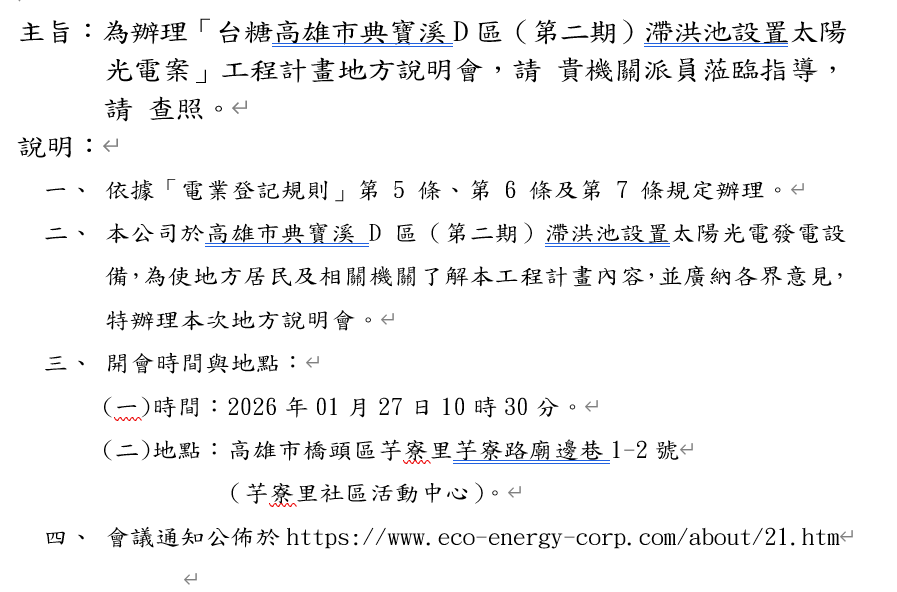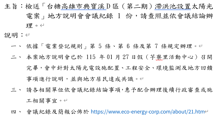 台糖高雄市典寶溪D區(第二期)滯洪池設置太陽光電案地方說明會